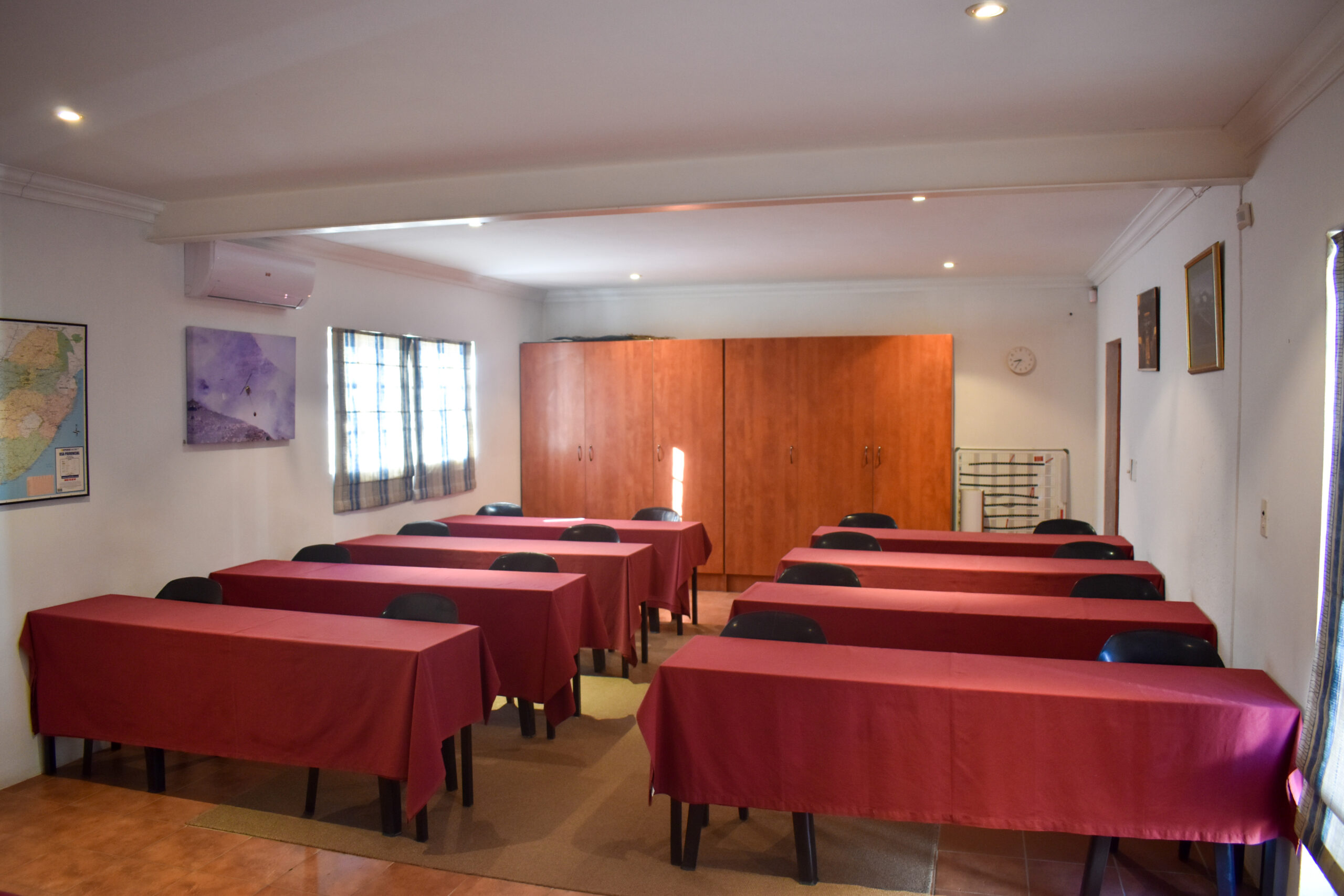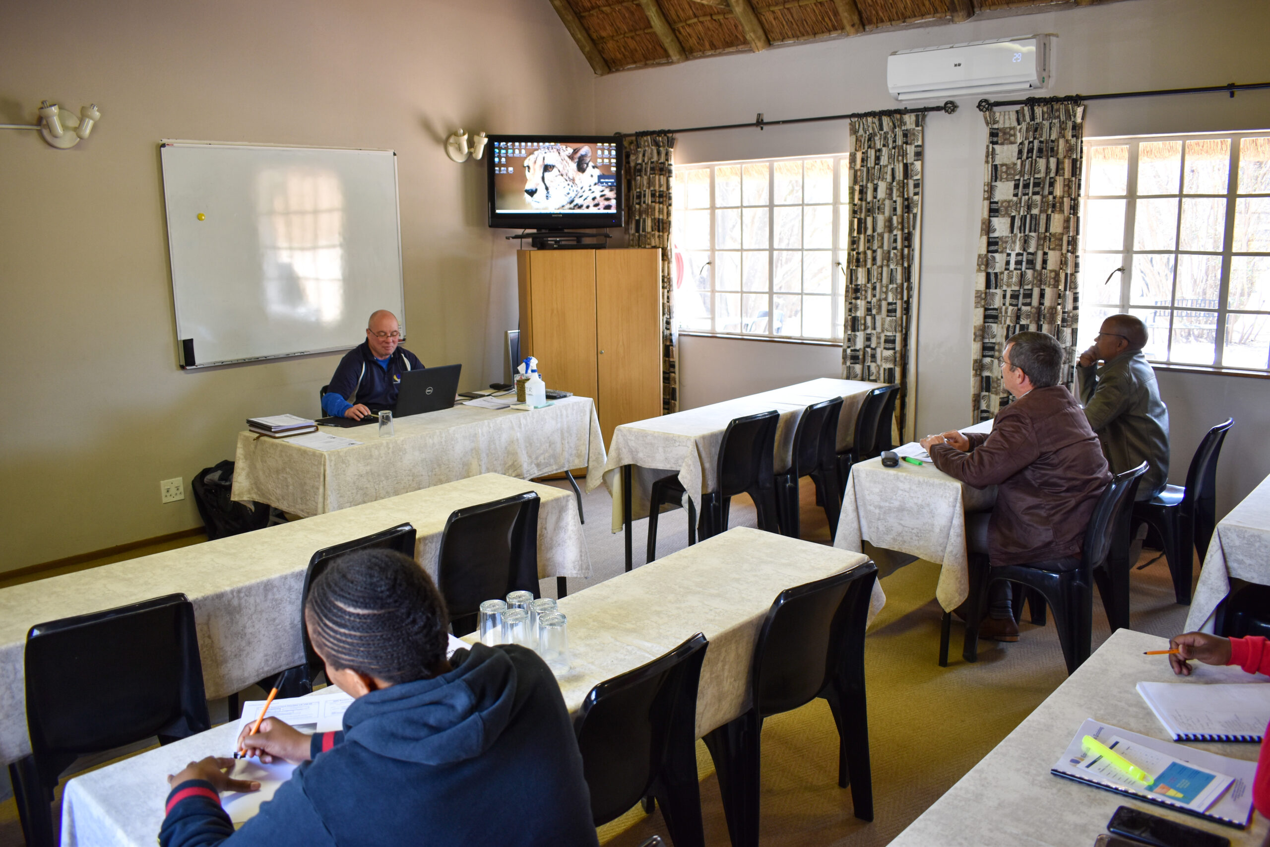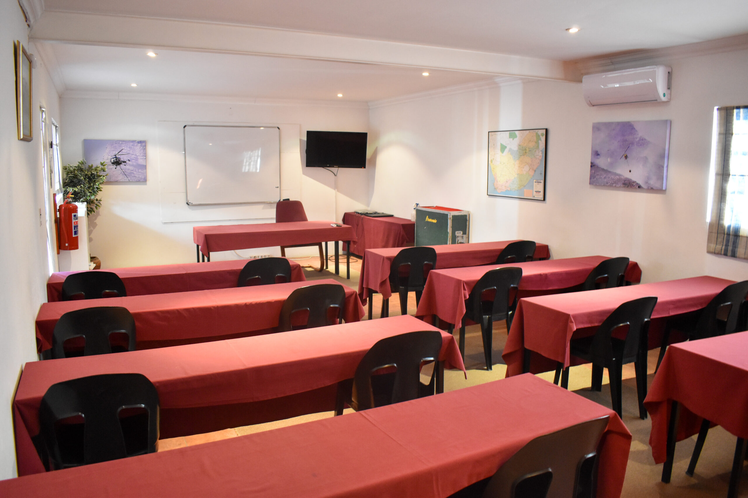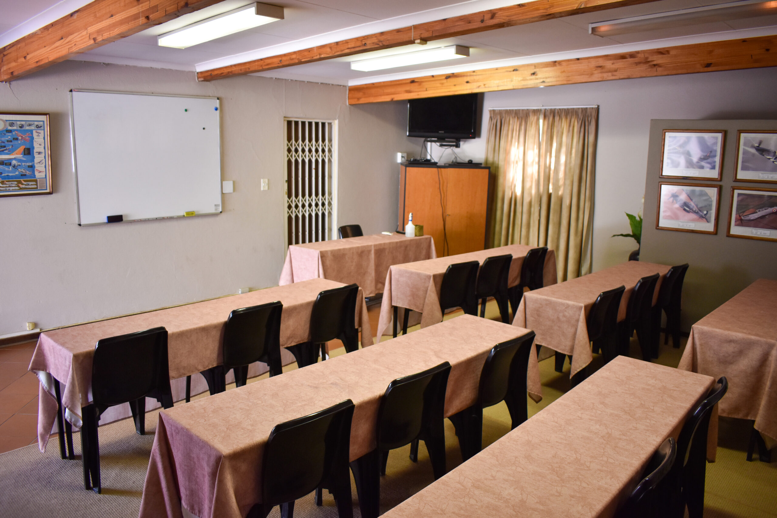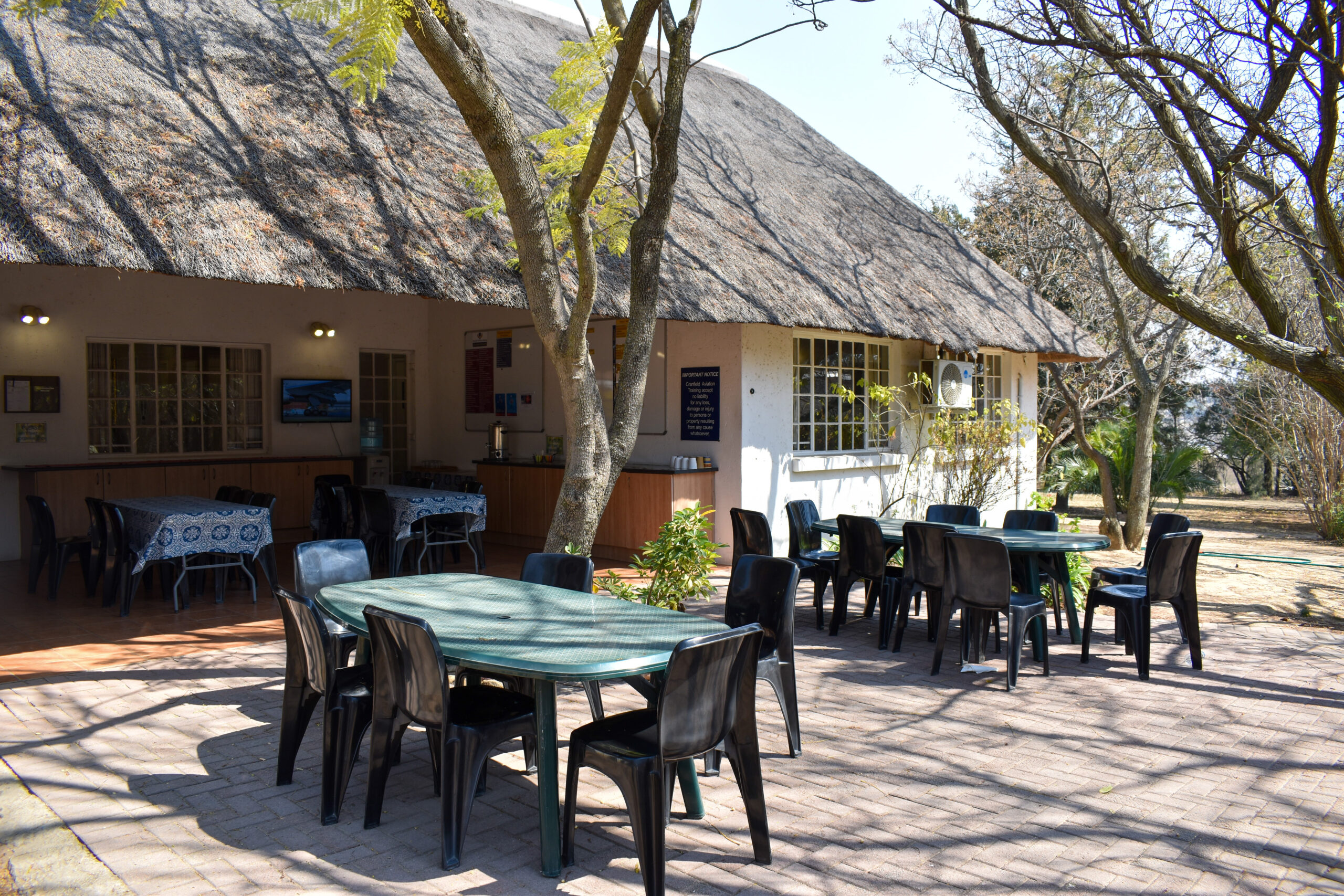 Cranfield Aviation Training is situated in the heart of Fourways Johannesburg, in a relaxed garden setting, surrounded by nature, friendly staff and the sound of the kettle catering for that continuous welcoming cup of coffee or tea. Our training venue comprises of bush lodge style thatch roofed classrooms that can accommodate up to 135 delegates, and a tasty lunch is served to our students on a daily basis.