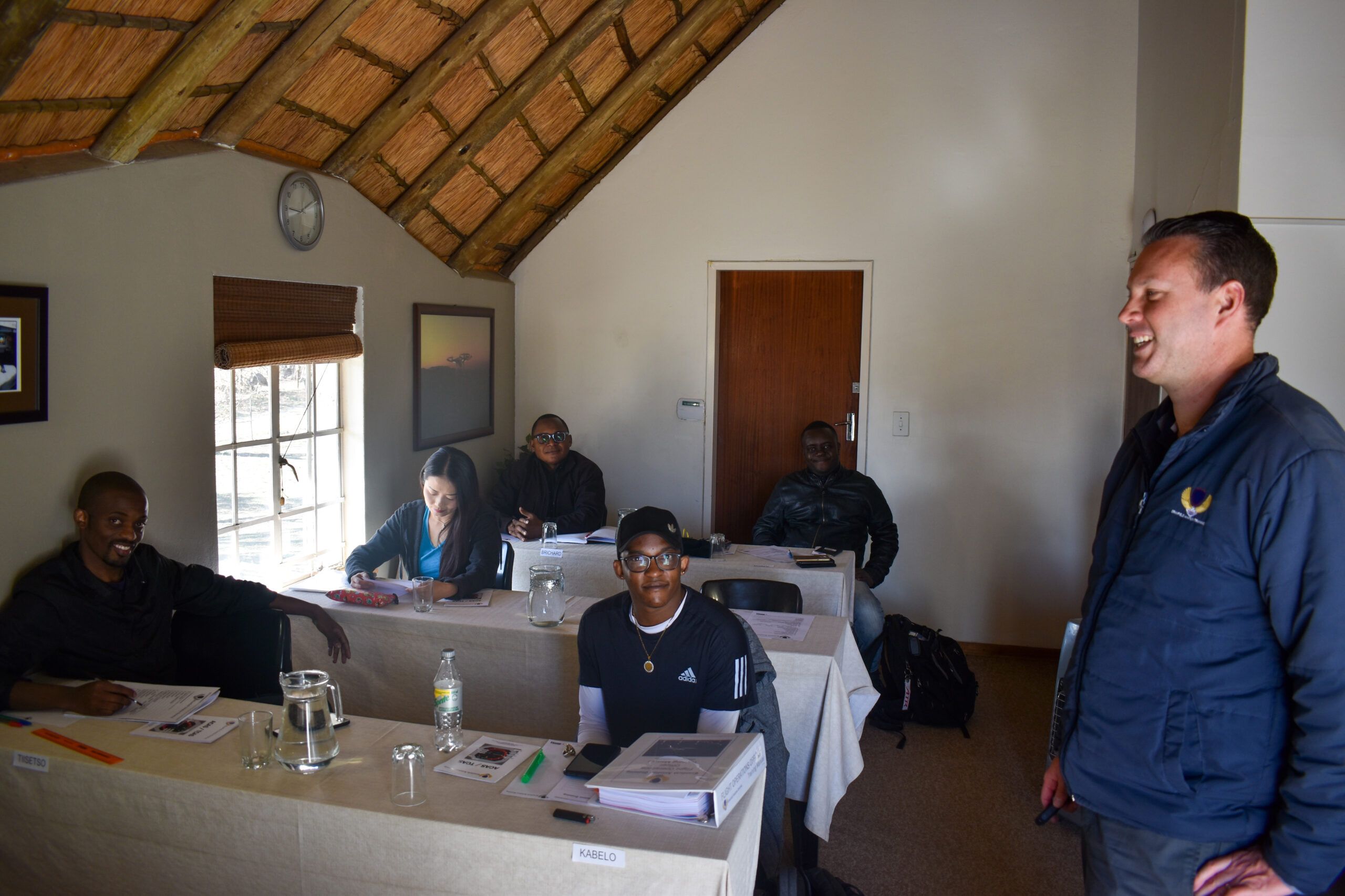 Cranfield Aviation Training is situated in the heart of Fourways Johannesburg, in a relaxed garden setting, surrounded by nature, friendly staff and the sound of the kettle catering for that continuous welcoming cup of coffee or tea. Our training venue comprises of bush lodge style thatch roofed classrooms that can accommodate up to 135 delegates, and a tasty lunch is served to our students on a daily basis.